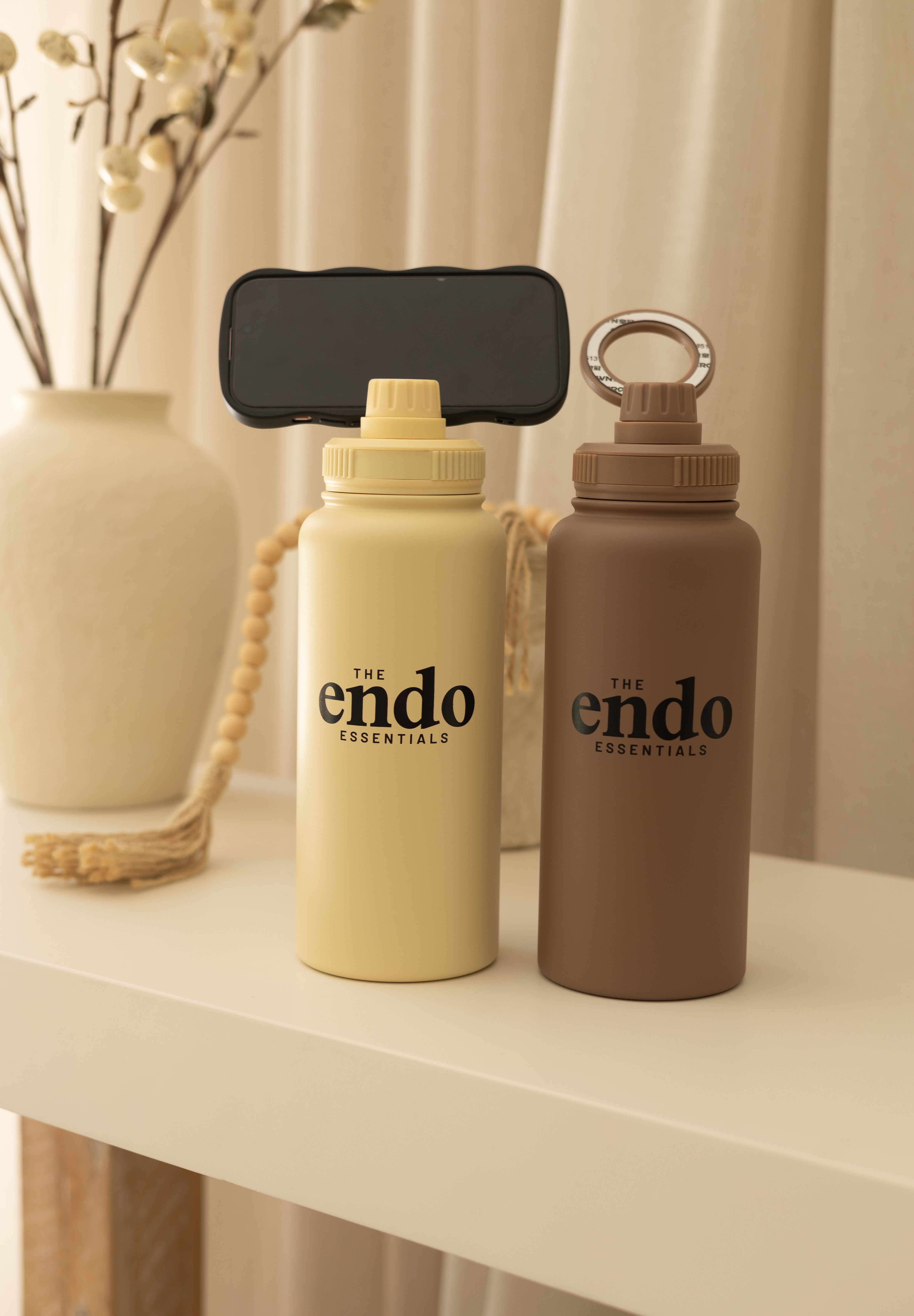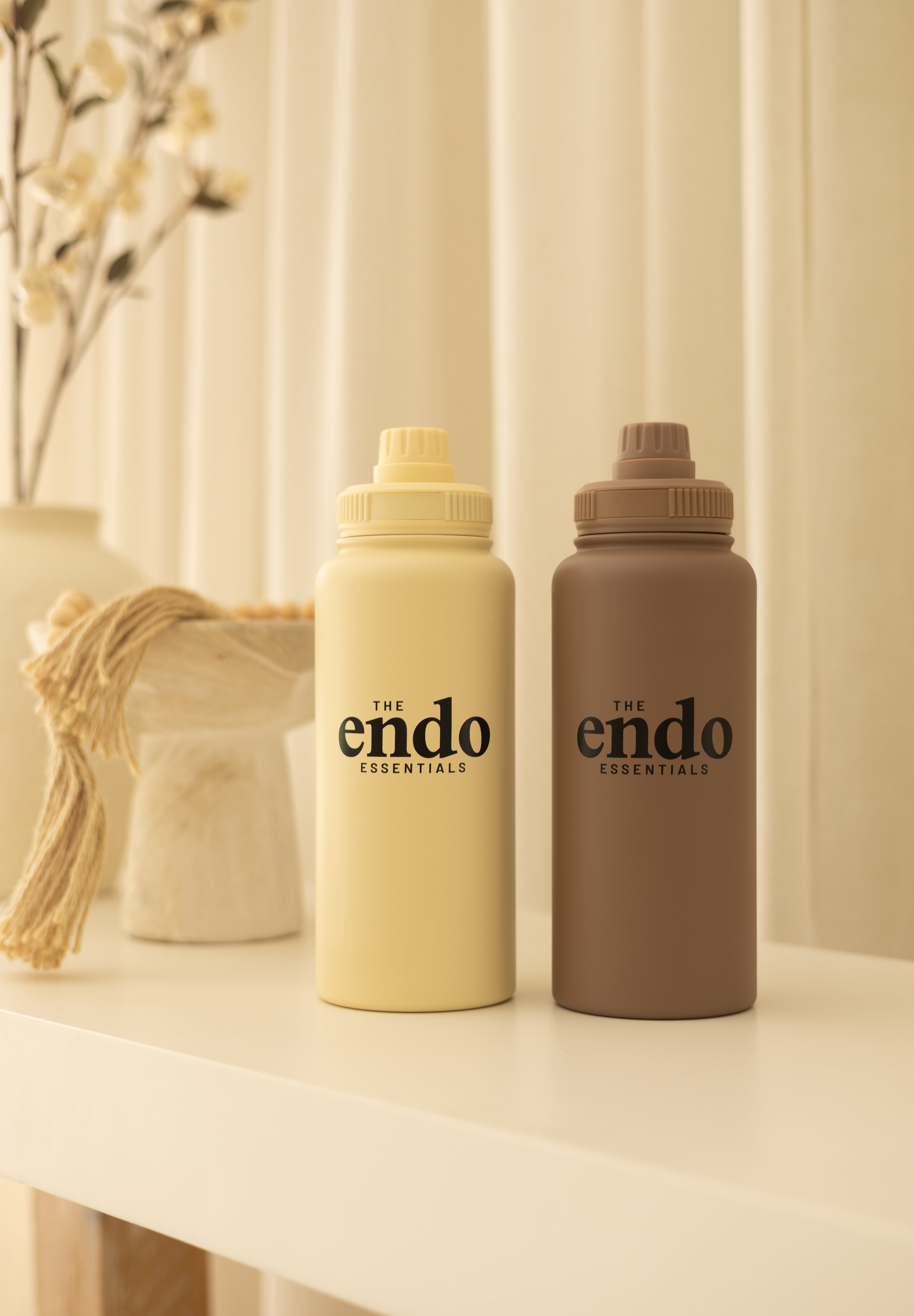 Our 950ml (32oz) Powder Coated Vacuum Insulated Water Bottle is designed with you and your wellness in mind. Available in a warm brown and yellowish beige, this stainless steel bottle keeps drinks cold (or warm!) for hours, supporting the hydration that’s so essential for those managing chronic conditions like Endometriosis, Adenomyosis and PCOS or if you just want to stay hydrated.